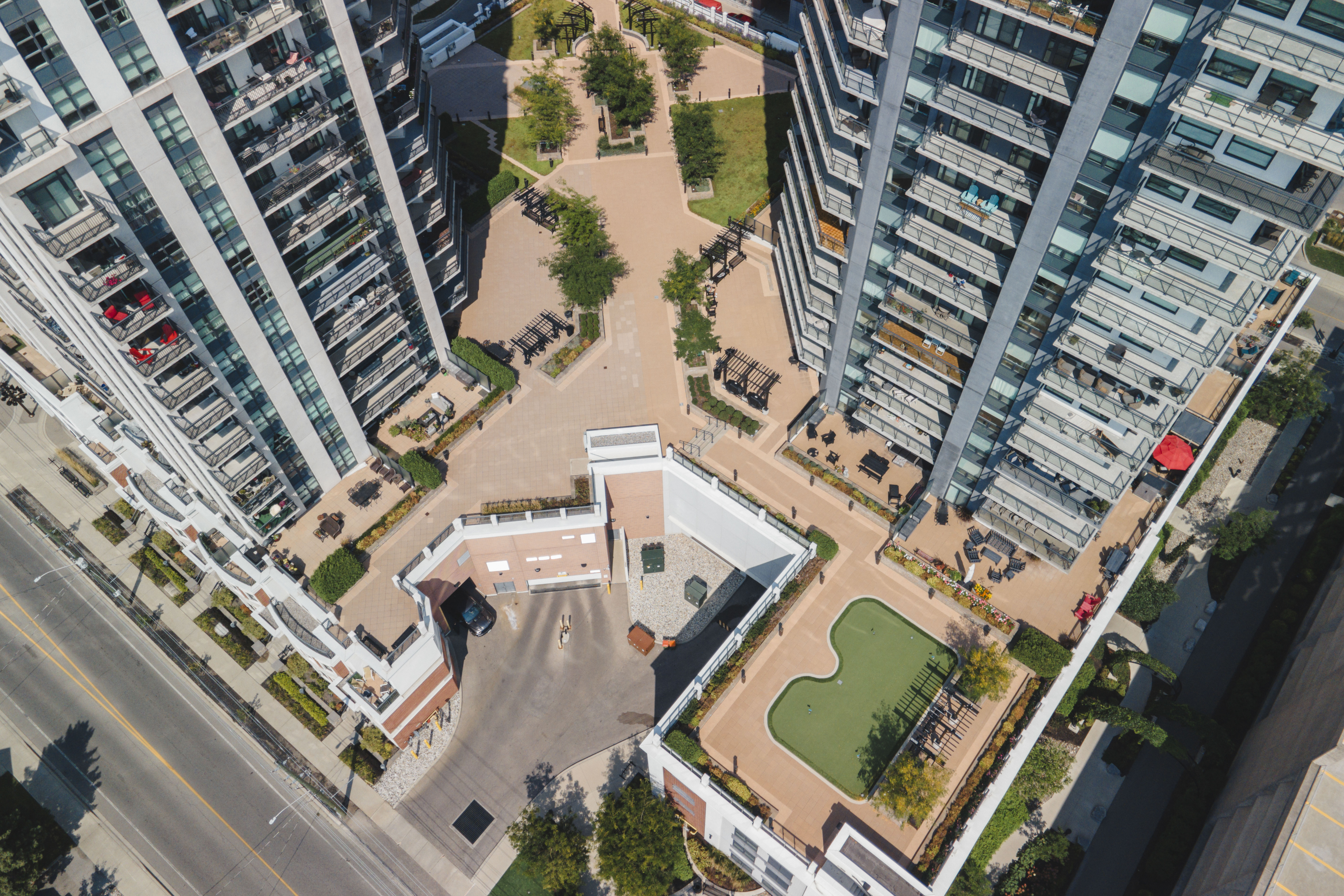 Located in Kitcheners' innovation district, Garment features a well-rounded outdoor space, including BBQs, a large outdoor pool and a basketball court.